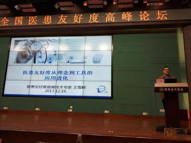 ▲活动嘉宾合影 来自全国各地和广东省内各级医疗机构近400名代表出席了当天的活动。本次论坛旨在倡导建立以患者为中心的“医患友好度”评价体系,改善患者的就医体验,将医患友好建设再提升一个新台阶。 医患交流平台有待改善 自2015年国家卫生计生委推出进一步改善医疗服务行动计划至今,医患友好度的建设受到社会各界的关注和支持。但从总体上看,国内医患关系虽然向好,但各方面问题仍比较突出,医患之间互动互信关系还没有完全建立。 国家卫生计生委基层卫生司副巡视员刘利群指出:“很多时候我们更加关注的是医疗技术、医疗质量和安全,但在医患沟通方面,我们做得还远远不够。” 互联网工具让就医更友好 医生和患者之间沟通不顺畅,是当前的医患矛盾之一。广东省中医药学会会长、广东省中医院名誉院长吕玉波认为:“医患关系处理的核心问题是医患间的沟通,而信息技术为医患沟通插上了翅膀。” “互联网工具确实可以让就医更友好。”王雪峰在本次论坛上发表演讲时说:“医患友好的实现需要理念的指引,更需要借助互联网工具的优势。两者有效结合,才能达到最好效果。” ▲王雪峰在论坛上发表演讲 从理念到工具的进化方向 作为医患友好度首席技术专家,王雪峰认为,想要将医患友好度实现从理念到工具的进化,应该做到这3点: 持续改进 建设医患友好是一个长期过程,各医院的情况不同,需要使用的方法也不同,不能一概而论; 摒弃以“我”为中心的思想 大部分医院网站内容以院内新闻为主,尚未将网站作为服务患者的工具。基于医患友好度的门户网站设计应该突出服务、突出互动、突出健康管理、突出患者参与; 适当考虑医患友好建设的一些要求 要让患者在院前、院中和院后都能享受便捷医疗,主动反馈就医感受,同时为每一个客户建立健康档案并进行主动的跟踪和关怀。 因地制宜才能效果显著 如何根据实际情况,通过互联网+的工具将医患友好度建设落地?王雪峰就以特扬与义乌天祥东方医院携手打造的义乌天祥东方医院医患友好度系统为例,从技术的角度出发,向与会者阐释了医患友好度如何从理念到具体落地应用。 打造健康微社区 为患者建立健康微社区,提供健康评测、健康直播、名医讲堂等各种健康教育和促进服务,提升患者体验和参与; 完成客户关怀系统 构建患者健康服务平台,为患者提供健康提醒、健康定制、满意度管理等服务,打造客户关怀系统; 建立医患咨询 构建医患咨询服务专区,打造便捷的医患沟通交流服务平台,可以拉近医患距离,提升参与度、美誉度; ▲特扬打造的医患咨询平台 提供健康定制服务 通过客户关怀系统,可为特殊人群(孕产、儿童、住院患者)构建个性化的健康教育服务; 创建友好度数据分析平台 构建基于大数据的友好度数据分析服务平台,分析友好度服务进展,不断优化提升患者的参与度、活跃度。 这一系统的全面构建,不仅使医患能更方便地沟通交流,同时也为医院优化了就医流程,减轻门诊压力。 医患友好度是互联网+时代的产物,想要实现理念的落地,就需要高效的工具支持。我们的最终目标并不是信息化,而是使医患关系更友好、双方共赢。 文&编:鹿鹿