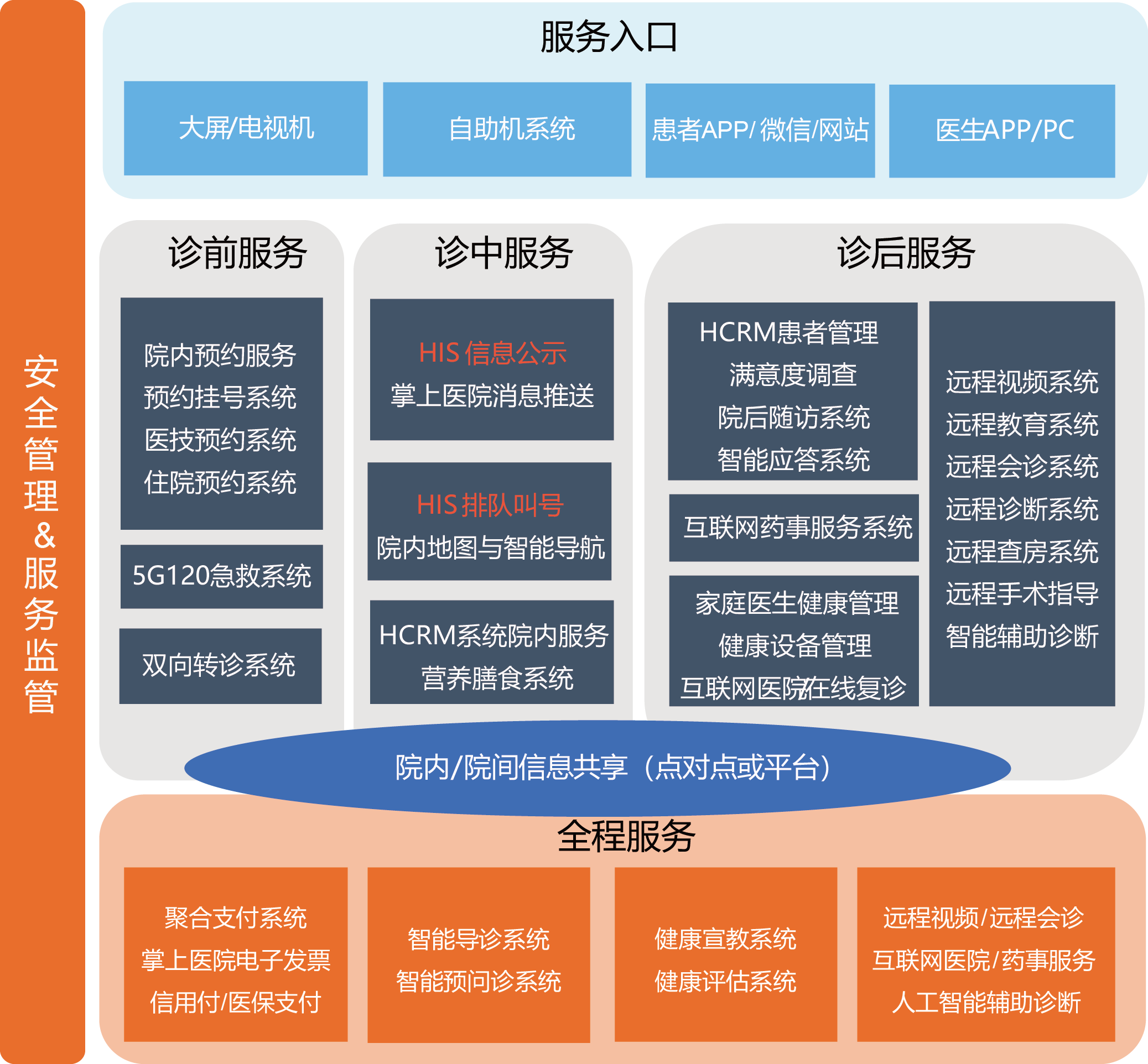 利用互联网、物联网、人工智能技术,实现患者、医护、药品、器械、医疗设备、医疗场所等资产系统之间的有效互动,按照一定的标准和管理规范进行有序的管理,在控制下进行运作,保障医院的基本医疗安全、提高医院的医疗质量、医疗水平和工作效率。